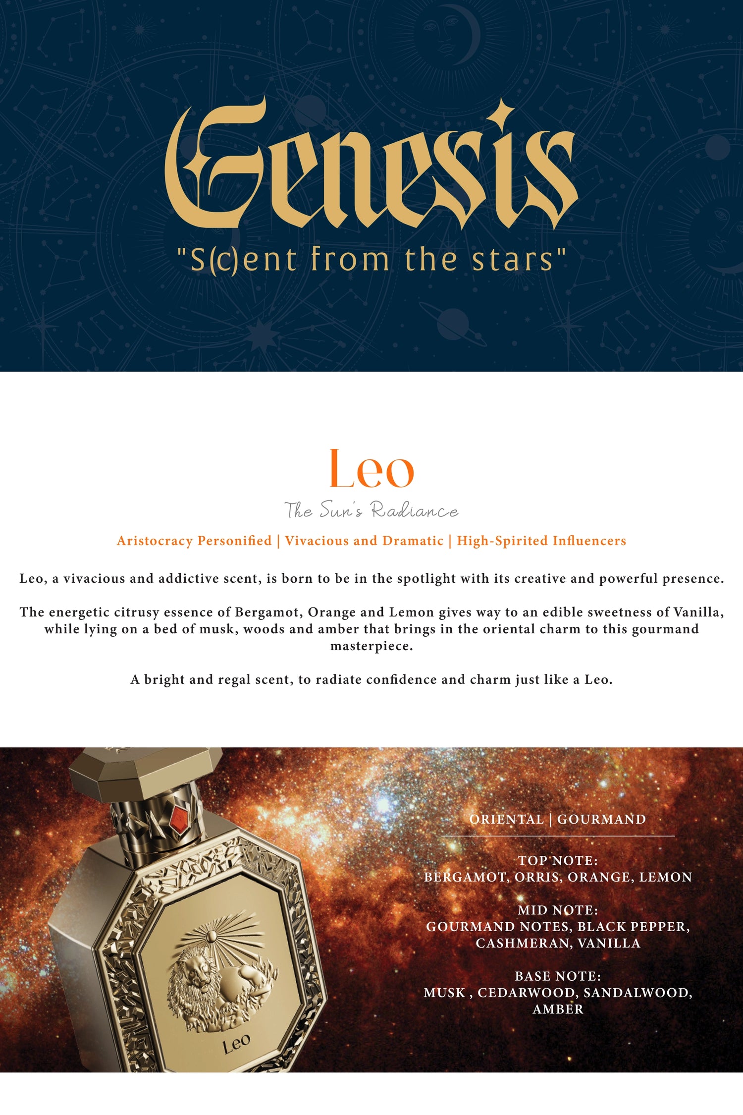 Envelop your senses in Leo, an exquisite oriental - gourmand fragrance highlighted by captivating notes of bergamot, gourmand notes, sandalwood. This mild intensity scent invites you into a personal moment of sophistication and elegance, evoking a sensory experience uniquely yours.