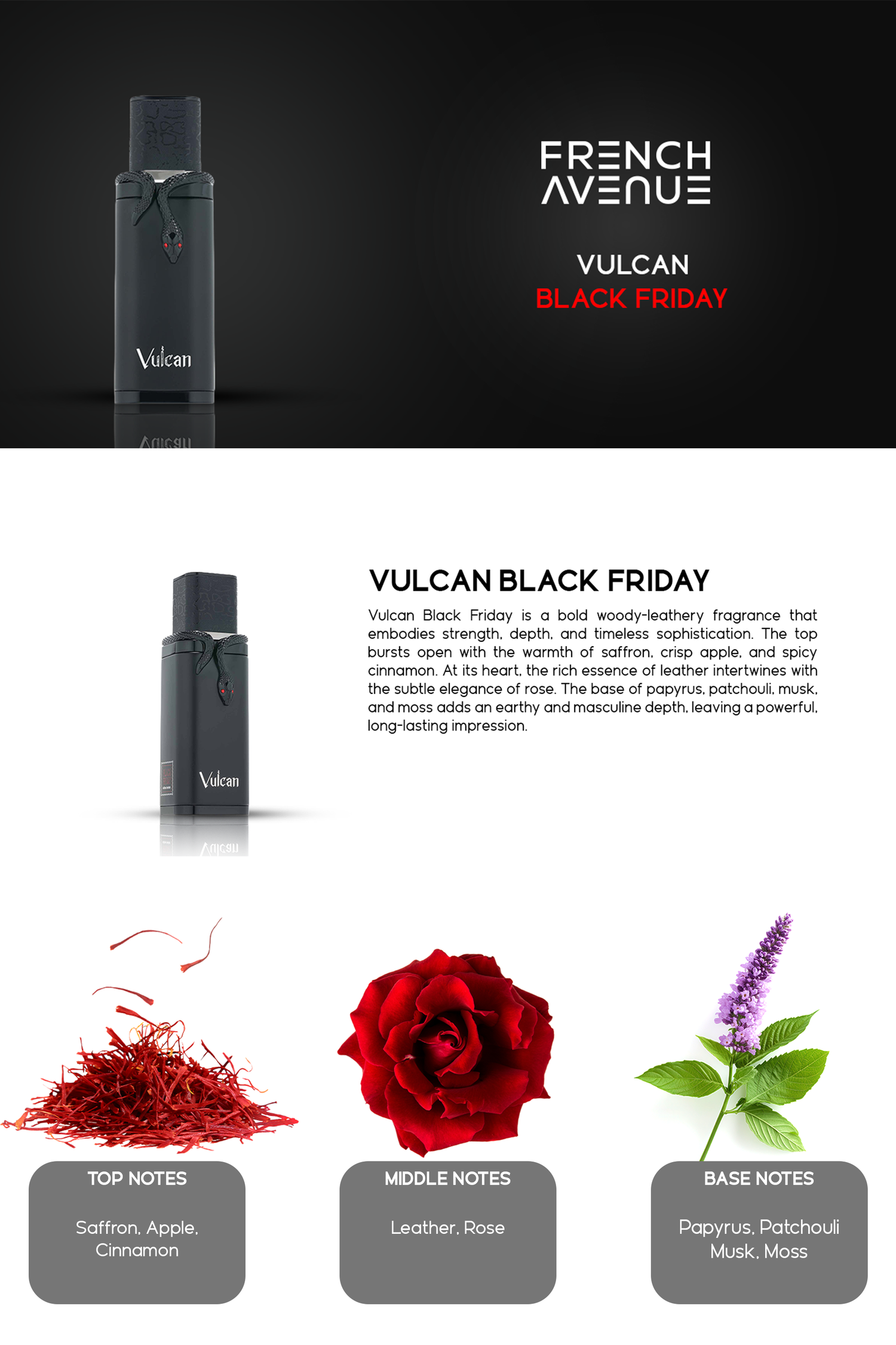 • Key Notes: Saffron, Leather, Patchouli
